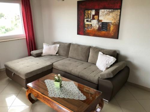 Ausstattung Wohnzimmer: Satelliten-TV (inkl. deutsche Programme), Sitzgarnitur (Sofa), Schränke, Tisch.
