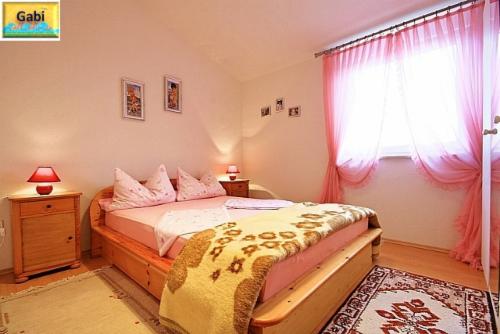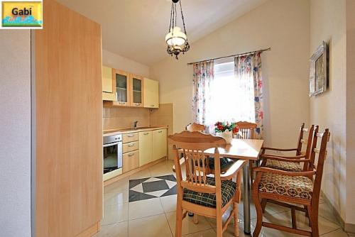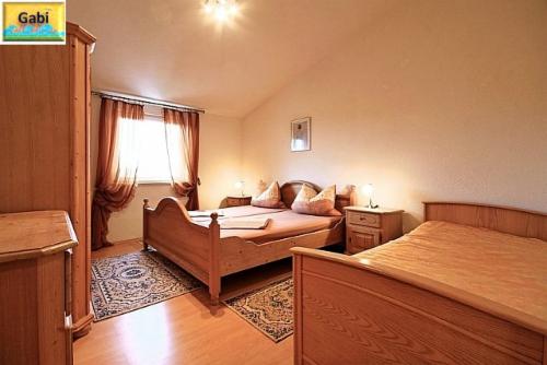 Die Ferienwohnung ist etwa 80 m² gross, für 4-5 Personen ausgelegt und befindet sich im Obergeschoss. Die Ferienwohnung besteht aus einer voll ausgestatteten Küche mit Essecke, Wohnzimmer, zwei Schlafzimmer, Dusche/WC und großem Balkon mit Sitzgarnitur.