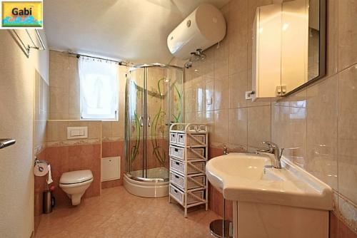 Ausstattung Bad/WC: Dusche, Waschbecken und Toilette mit Waschbecken (separater Raum neben Bad)