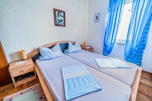 Ausstattung Schlafzimmer: Jeweils Doppel-Betten (eines verfügt zusätzlich über eine Ausziehcouch), Schränke, Bettzeug.