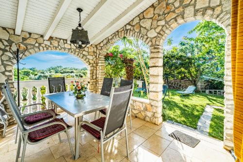 Die Wände sind bis zu 4m hoch, was mitsamt der Klimaanlage für angenehme Temperaturen sorgt. Zur Wohnung gehört ein Balkon und eine überdachte Terrasse mit Blick aufs Meer und die Insel Brioni.