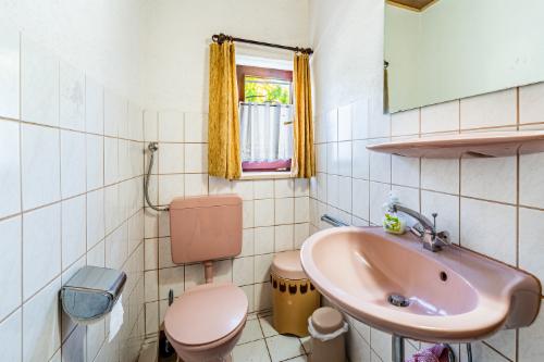 Ausstattung Bad/WC: Dusche, Waschbecken und Toilette mit Waschbecken (separater Raum neben Bad)