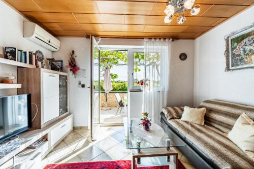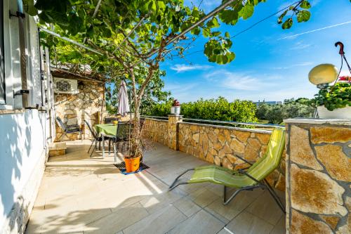 Diese Ferienwohnung (65 m²) ist sehr schön und geräumig für bis zu 6 Personen ausgelegt. Das Interieur ist stilvoll und hochwertig eingerichtet. Der Zugang zu dieser Wohnung ist rollstuhlgerecht. Zur Wohnung gehört zum Süden hin eine Terrasse, die von Kiwis umrankt Blick auf einen idyllischen Olivenhain gewährt.